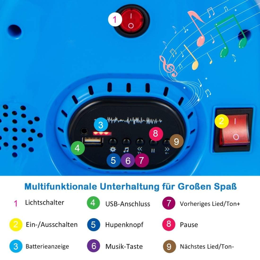 6V barnbil 360 graders rotation med musik och färgglada LED-lampor blå