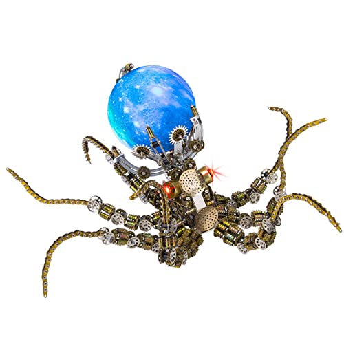 Metalkitor 3D-pusselmodellkit i metall – mekaniskt bläckfiskfäste, pussel med 2 400 st – perfekt gör-det-själv-present till vuxna – retro steampunk-stil (med färgglada lampor)