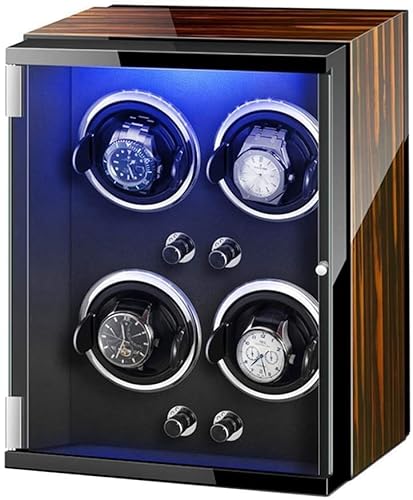 Watch Winder Box 4 Automatisk Watch Winde AC-adapter och batteridriven färgglada lampor Justerbara klockkuddar
