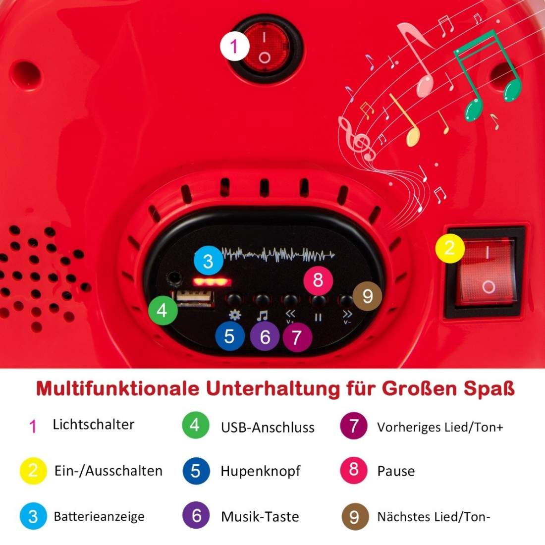 6V barnbil 360 graders rotation med musik och färgglada LED-lampor röda
