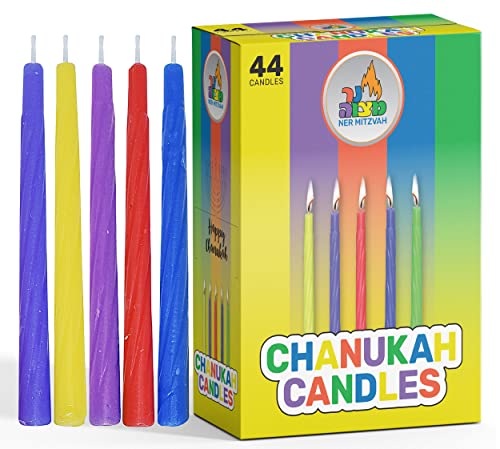 Färgglada chanukah-ljus - Hanukkah-ljus i standardstorlek - vax av högsta kvalitet - blandade färger - 44 antal för Hanukkas alla 8 nätter - av Ner Mitzvah