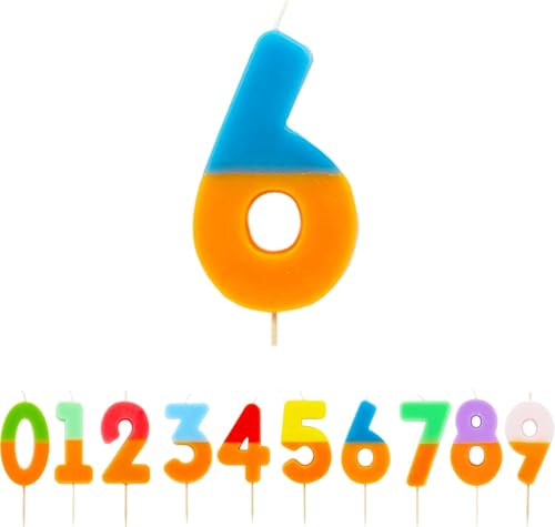 Talking Tables Orange och blå nummer 6 ljus för kakor | färgglada födelsedagstårtdekorationer för barnfest, pojkar 6:e, 16:e, 60, flickor, årsdag, milstolpe
