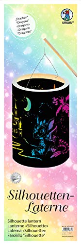 URSUS 18750002 Siluett drake, pysselset med material för pyssel av en lykta, diameter 15,3 cm, höjd ca 20 cm, inklusive LED-ljus, färgglada