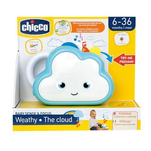 Chicco Weathy la Cloud, Pedagogiskt talande spel, upptäck vind, regn, sol, regnbåge, ljud, melodi, manuell aktivitet, färgglada ljus, stimulera uppmärksamhet och lyssnande, barnspel 6-36 månader