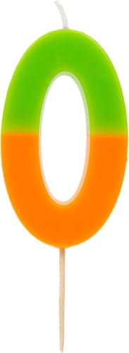 Talking Tables Orange och grön nummer 0 ljus för kakor | färgglada födelsedagstårtdekorationer för barnfest, pojkar, flickor, jubileum, milstolpe