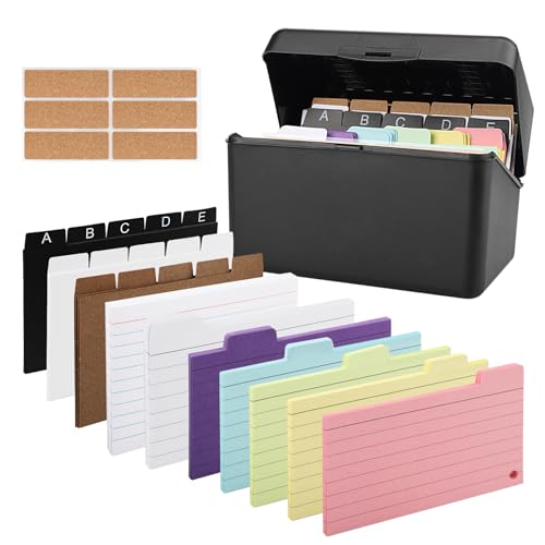230 indexkort med indexlåda svart färgglada linjerade 15 flikar 6 ringar 6 klistermärken indexkortslåda, 10 färger flashkort ordförråd kort för skolsaker kontor hem inlärning anteckningar