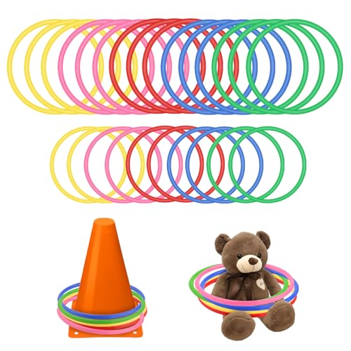25 kastringar, 15 cm & 13 cm plast toss-ringar i 5 färger, färgglada ringar för barn, utomhus fest- och karnevals-spel