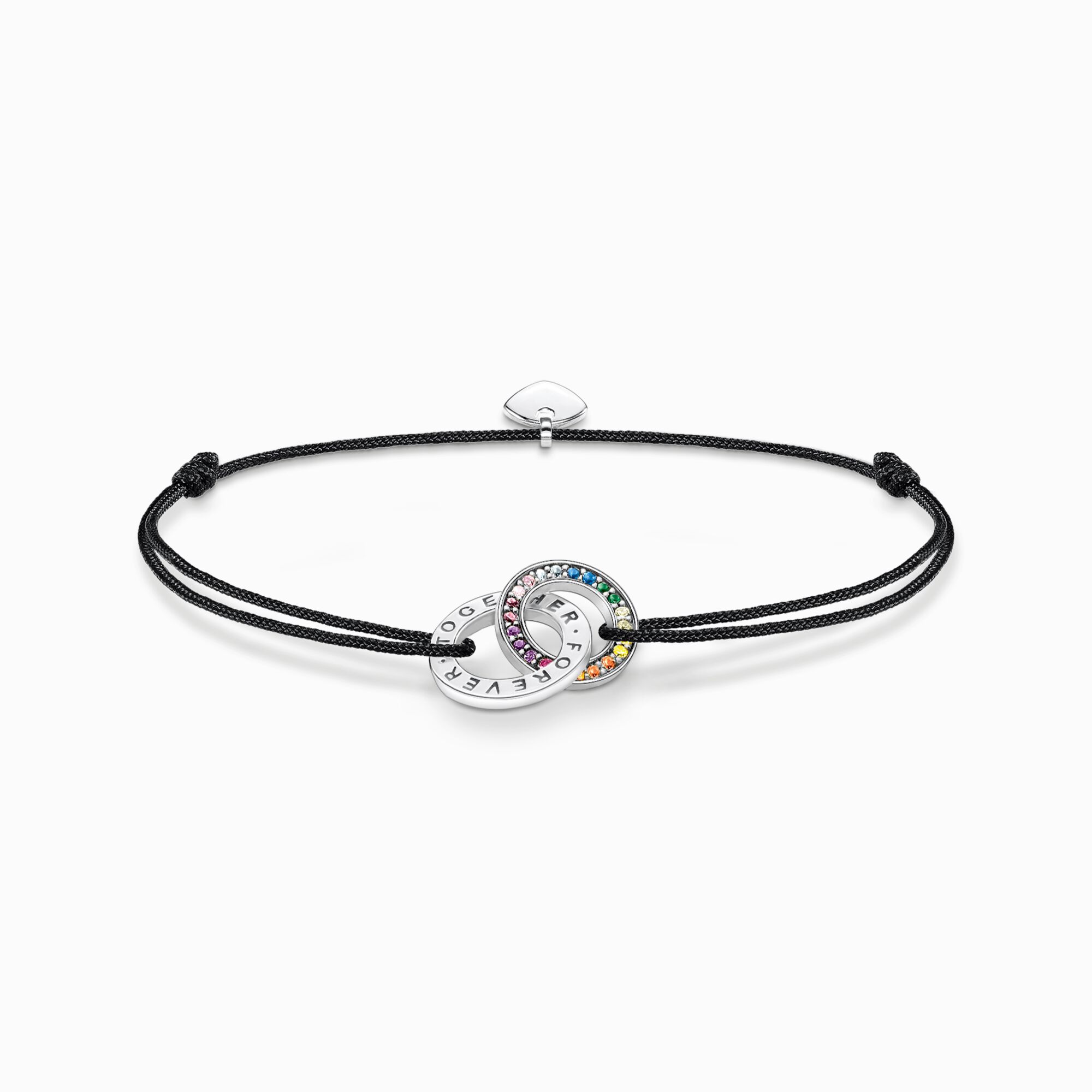 Thomas Sabo Svart textilarmband med två ringar i svärtat silver och färgglada stenar A2085-318-7