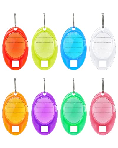 Uniclife 24 stycken ovala nyckelringar, färgglada, robusta plastnyckelringar med linjerade pappersetiketter, klara fönster och delade ringar, robusta produktmärkningar, 8 färger