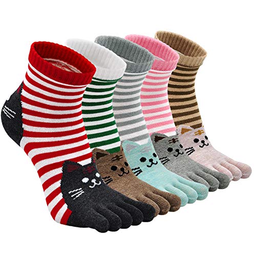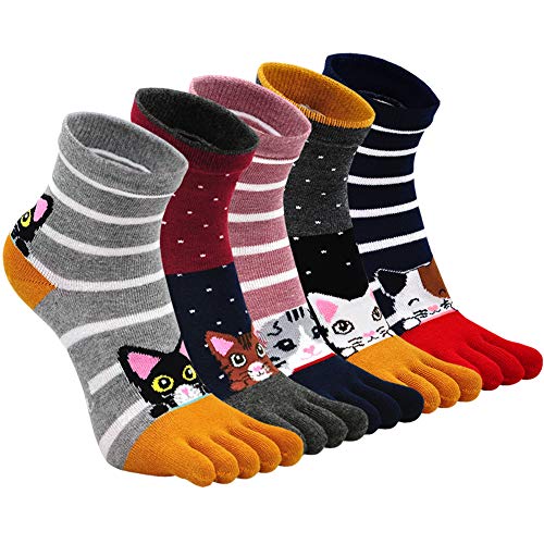 ZAKASA Tåstrumpor dam Femfingerstrumpor gjorda av bomull,roliga strumpor kvinnor damsneakerstrumpor Färgglada roliga djurstrumpor med tår för sportlöpare färgglada strumpor,5 par,36-41