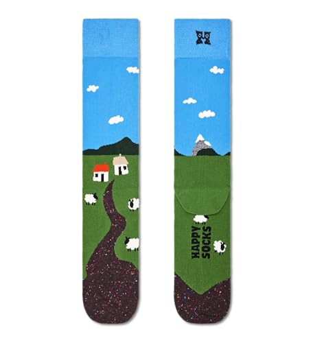 Happy Socks Little House On The Moorland Sock, färgglada och roliga, Strumpor för män och kvinnor, Blå-Grön-Vit (41-46)