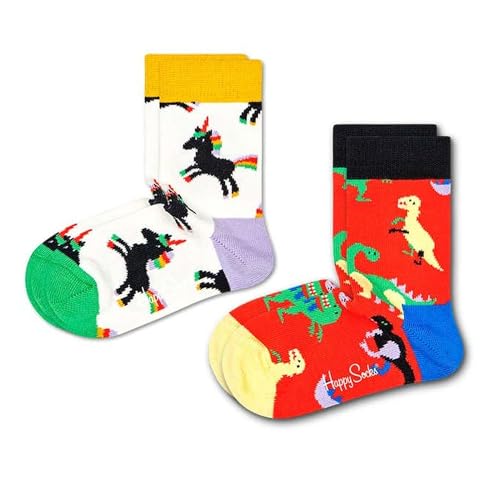Happy Socks 2-pack Kids Dinosaur Sock, färgglada Strumpor för Barn, Röd-Gul-Grön-Svart-Blå (7-9Y)