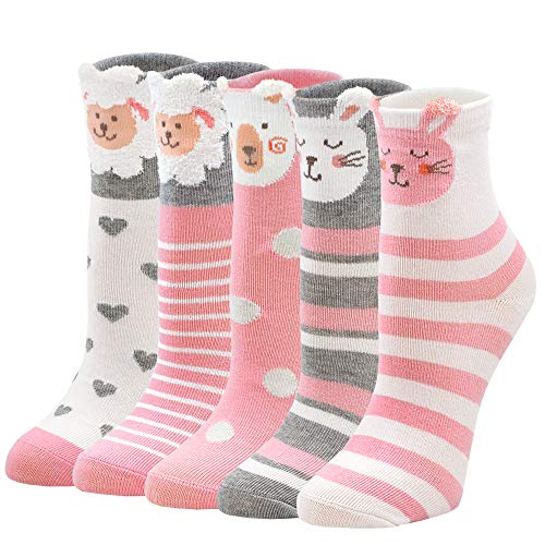 LOFIR Barnstrumpor flickor färgglada strumpor av bomull småbarn karikatyr söta djur strumpor gåva för barn flickor 2–14 år, storlek 20–22/24–29/31–34/35–38, 5 par, Färg 1, 35-38