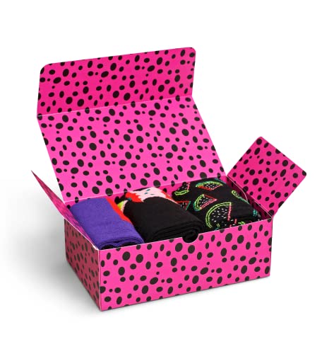 Happy Socks 3-Pack Fruits Socks Set, färgglada och roliga, Strumpor för män och kvinnor, Svart (41-46)