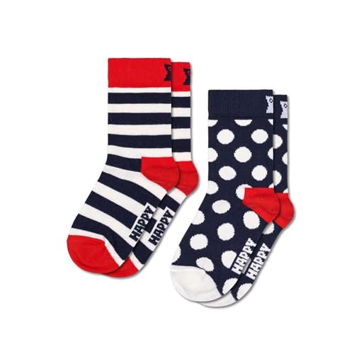 Happy Socks Stripe, färgglada och roliga, Strumpor för barn, Blå-Röd-Vit 2 par (12-24M)