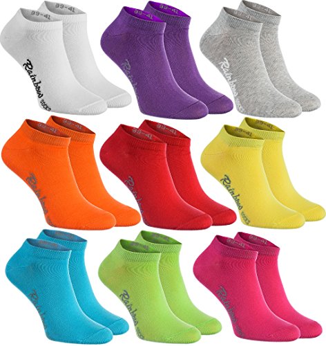 Rainbow Socks – Kvinnor män bomull färgglada sneakers strumpor – 9 par – vit lila grå orange röd gul teal grön magenta – storlekar, 9 x vit lila grå orange rödgul tealgrön magenta, 39-41 EU