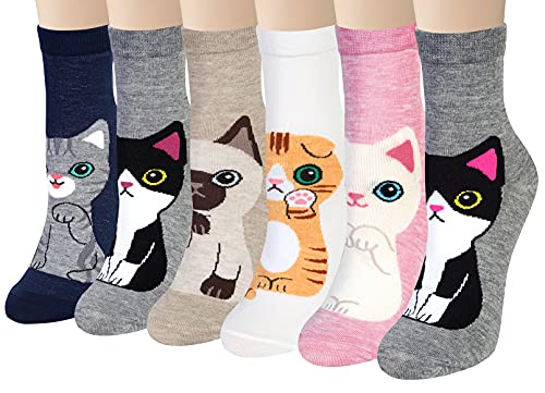 LOFIR Roliga färgglada strumpor kvinnor djurmönster söta strumpor av bomull söt karikatyr Kawaii kattstrumpor nyhet strumpor present för flickor damer storlek 35–41 5 par, Färg 4, 35-41 EU