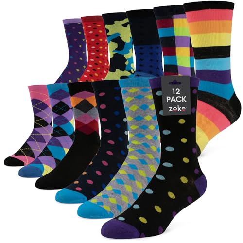 ZEKE herrmönster klänning funky roliga färgglada crew-strumpor 12 blandade mönster, Variation H, 43-47 EU