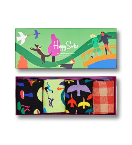 Happy Socks 4-Pack Into The Park Socks Set, färgglada och roliga, Strumpor för män och kvinnor, Grön (36-40)