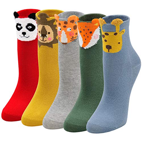 LOFIR Barnstrumpor flickor färgglada strumpor av bomull småbarn karikatyr söta djur strumpor gåva för barn flickor 2–14 år, storlek 20–22/24–29/31–34/35–38, 5 par, Färg 1, 24-29