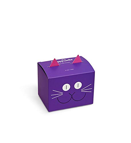 Happy Socks Cat Gift Box, färgglada och roliga, Strumpor för män och kvinnor, Blå-Rosa-Lila-Gul (41-46)