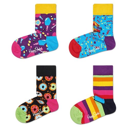 Happy Socks Carousel Gift Box, färgglada och roliga, Strumpor för barn, Röd-Turkos-Gul 4 par (2-3Y)