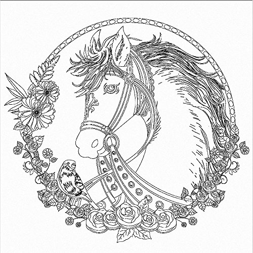 Honsell 12132 – Kilram med hästmotiv, format 30 x 30 cm, förtryckt motiv för målning med akryl-, akvarell- och oljefärger och filt- och färgpennor, vit