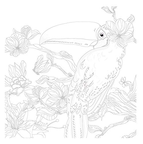 Honsell 12112 – kilram med tukanmotiv, format 30 x 30 cm, förtryckt motiv för färgning med akryl-, akvarell- och oljefärger samt filt- och färgpennor