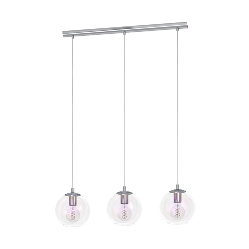 EGLO Ariscani 2 Hänglampa, med 3 ljuskällor, iriserande pendellampa, färgskiftande taklampa för matbord, hängande matrumslampa i förkromad metall och glas, E27-sockel, diameter 76,5 cm