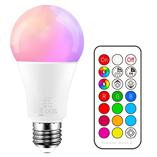 ILC Färgändrande glödlampa, 70 watt ekvivalent, dimbar kall vit 5700K 10W E27 Edison skruv RGBW LED-glödlampor färgskiftande lampor, 12 färgval - IR-fjärrkontroll ingår