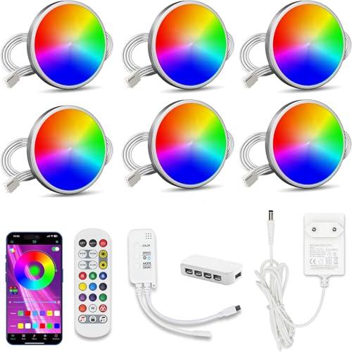 Belysningssats för underskåp, smarta RGB LED-pucklampor med fjärrkontroll, APP-kontroll, musiksynkronisering, scenlägen, färgskiftande LED-lampor