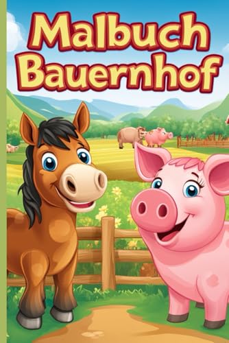 Malbuch Bauernhof; 45 Seiten, ab 3 Jahren mit verschiedenen niedlichen, leichten Tier- und Bauernhofmotiven: Kuh, Pferd, Huhn, Hund, Katze, Schwein, Rind, Schaf, Traktor, Bauer, Farm, Natur
