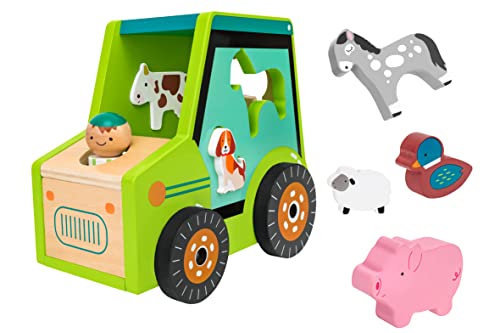 SirWood Traktor i trä med sammankopplade formar - Farm Animal Formes - Frihjulstraktor Tidig Barndom Globe Leksaker - 41595