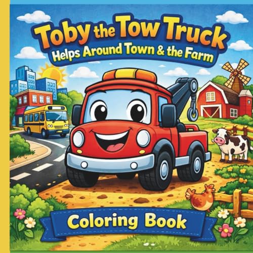 Toby the Tow Truck Helps Around Town & the Farm Coloring Book: A Helping Vehicles Coloring Book for Kids Ages 3–8 Featuring Kindness, Teamwork, and Safety