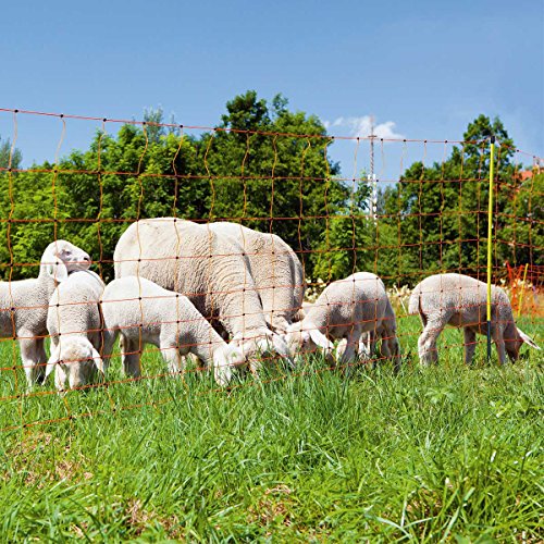 VOSS.farming Elektriskt staketnät bondgård för får, fårnät, höjd 90 cm, längd 50 m, 14 svarta stolpar, 1 spik, orange
