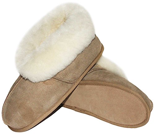 Rökü Fårskinnstofflor, inneskor dam och herr, lädersula, högsta kvalitet, Beige, 43 EU