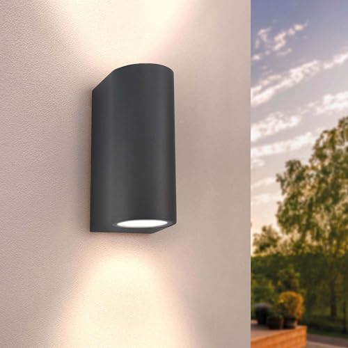 Ledvion - Antracit rund LED vägglampa, GU10 Spot, IP54, upp och ner ljus, utomhu, utomhusbelysning, trädgårdsbelysning, fasadbelysning