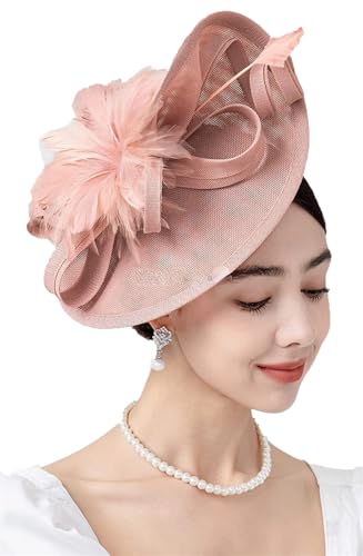 OWEIEYEU Fascinator-hatt för kvinnor tebjudning Derby Fascinator pillerlåda hatt bröllop fjäder blomma fascinator, NAKEN, one size