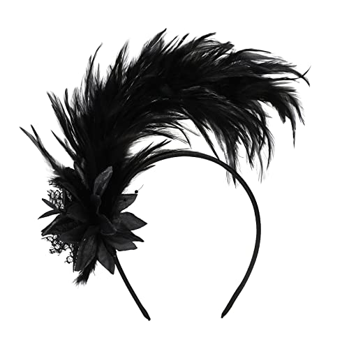 MWOOT Fjäderpannband, 1920-tal befjädrad fascinator, huvudbonad med svart fjäder, huvudbonad för konstgjord blomma, fjäderer, hårtillbehör för cocktail bröllop, tebjudning, dekoration