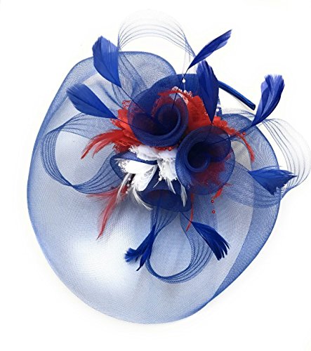 Caprilite blå röd vit Union Jack fascinator hatt pannband Alice band kungligt bröllopsfest Ascot Derby tävlingar