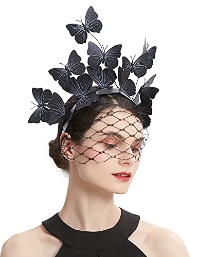 Coucoland Fascinators Hat Veil Headband Butterfly Fascinator Headpiece for Derby Tea Party (Black)