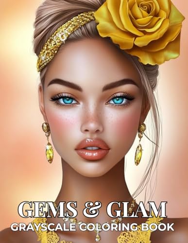 GEMS & GLAM Grayscale Coloring Book: Glamorous Women Portraits with Luxury Jewelry – 46 Fashion & Gemstone Inspired Illustrations for Adults – Elegant Grayscale Coloring Pages