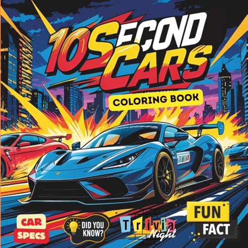 10 Second Cars Coloring Book: Fast, Furious, and Fun: 50 High-Speed Cars to Color and Learn About