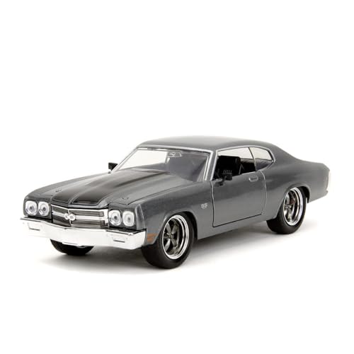 Jada Toys Fast and Furious modellbil 1970 Chevrolet Chevelle SS (grå) – filmbil från Fast & Furious 10 med delar för öppning, skala 1:24 (19 cm), för fans och samlare från 8 år