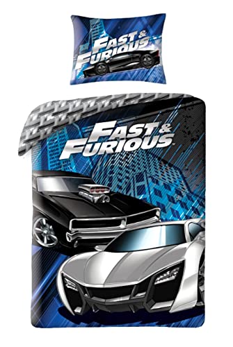 Theonoi Set med 2 delar sängkläder, påslakan vändbara sängkläder 135 x 200 80 x 80 bomull – barnsängkläder för flickor och pojkar – Öko-Tex Standard 100 tysk standardstorlek Fast and Furious