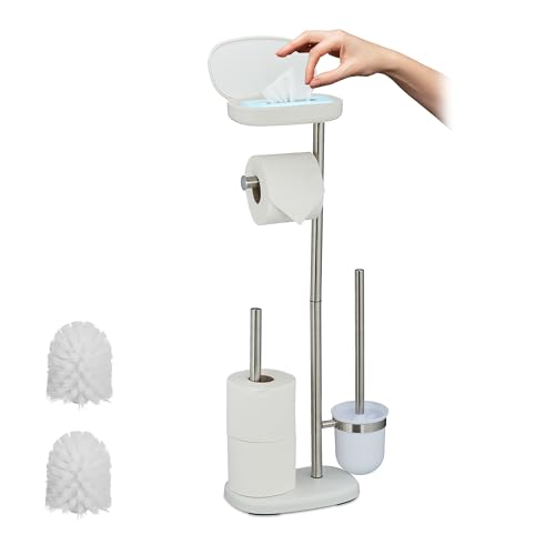Relaxdays Toalettservering, ej fast, toalettborste, borsthållare, för att göra ett lager av rullar, HxBxD 69 x 31 x 16 cm, vit