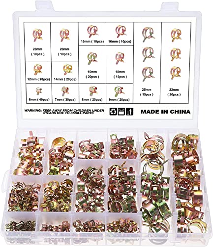 Faankiton 260 st 12 storlekar 6–25 mm bränsleledningsslangklämmor vattenrör luftrör silikon vakuum slangklämma fästanordning sortimentkit, bränsleledningsklämmor, fjäderslangsklämmor
