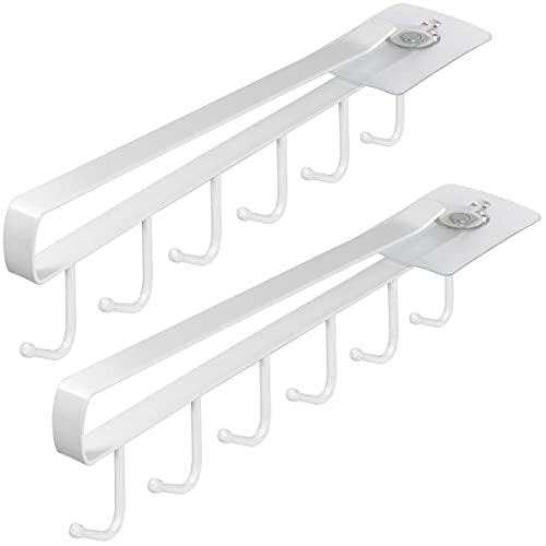 iGadgitz Home U7166 hängande kopphållare i metall (set om 2), krok, mugghållare, köksförvaring med självhäftande fästanordning - vit