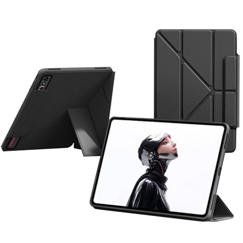 Skyddsfodral för RedMagic Astra, flervinklat vikbart stativ fäste för surfplatta fodral, heltäckande skyddsfodral, smal smart lätt, automatisk väckning/sömnfunktion (svart)