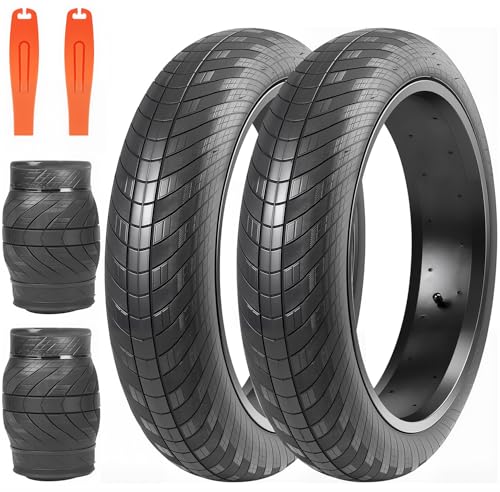 ZUKKA 2-pack cykeldäck 20 tum Fat Bike Tire 20 x 4,0 tum plus 2-pack 20 tums slang 20 x 4,0 AV35 mm för e-cykel mountainbike tung högpresterande slitstark snöcykeldäck, svart